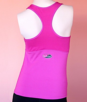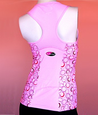 Zip fronted tank top w/built in molded bra • Pink w/bubble pattern side panels •...$59.99 -