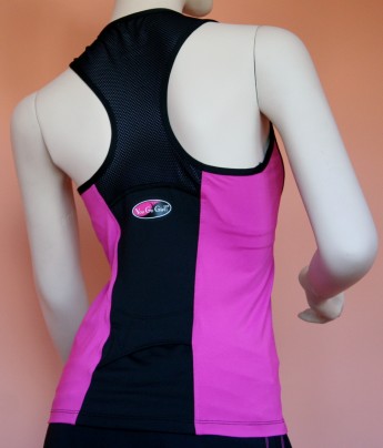 Zip fronted tank top w/built in molded bra • Black w/hot pink side panels • Buil...$59.99